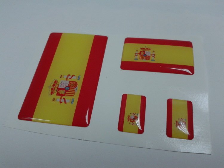 Pegatinas con gota de resina sobre vinilo blanco permamante bandera española